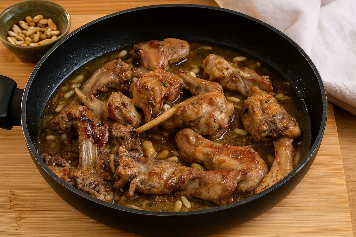 El arroz con conejo y piñones es uno de esos platos que evocan cocina casera, aromas mediterráneos y una calma que solo se encuentra cuando se cocina sin prisa. La suavidad del conejo, el perfume de la salvia y el toque crujiente de los piñones crean una combinación que se siente equilibrada y reconfortante.