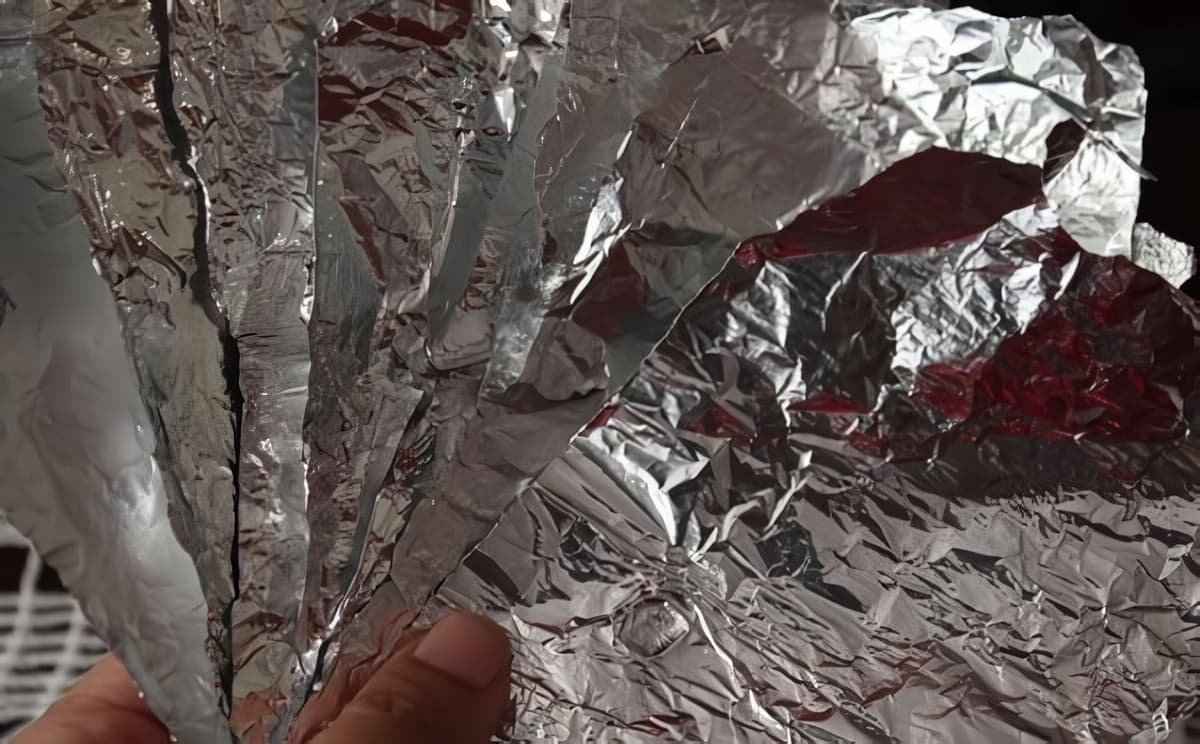 O nailon para empaquetar, deben cuidar que no se manche el resto del cabello porque la preparación de polvo decolorante y oxidante se hincha.