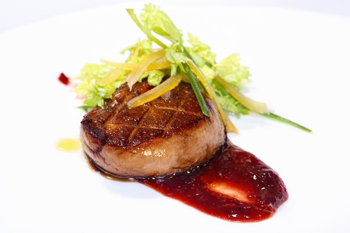- Cortar una loncha de foie de oca, rociarla con un chorrito de vino de Oporto y salpimentar al gusto.