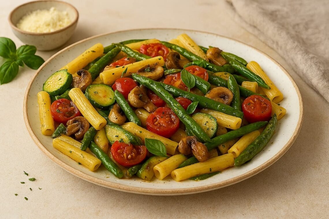 Fideos zite con verduras estilo italiano: frescura, color y sabor mediterráneo
